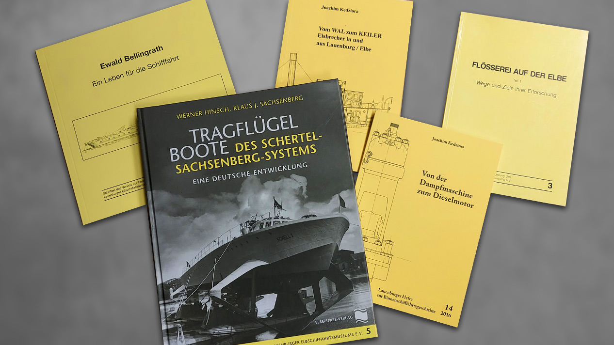 Bis heute sind 7 Buchveröffentlichungen sowie 18 „Lauenburger Hefte zur Binnenschifffahrtsgeschichte“ erschienen, die Sie per E-Mail an info@elbschifffahrtsarchiv.de oder per Post sowie im Elbschifffahrtsmuseum, auf dem Raddampfer KAISER WILHELM und bei der Schiffsbuchhandlung Fuchs in Hamburg erwerben können.